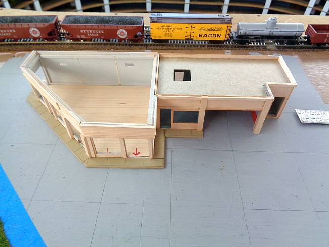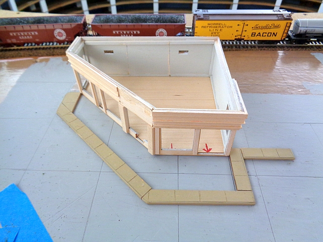 Once the sidewalks were securely glued in place, it was easy to just slide the structure in against the sidewalks.