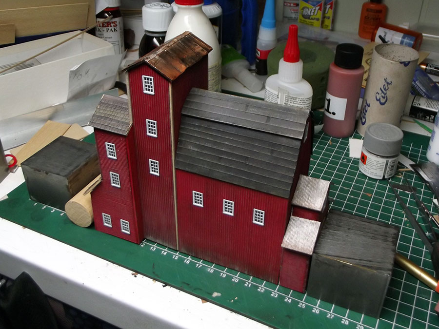 As I said it looks great. Didn't think I was gonna like the black roof but on the finsihed model it all comes together. Great job. Any signs gonna go on it? Can't wait to see the detailing and see it placed on its home on your RR. Trackwork and scenery also looks great.