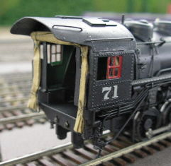 Once made, the curtains were painted with Floquil Earth and installed on the loco.