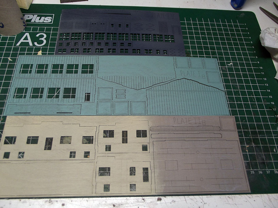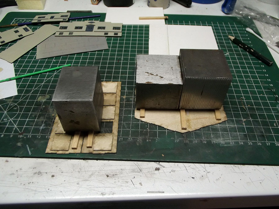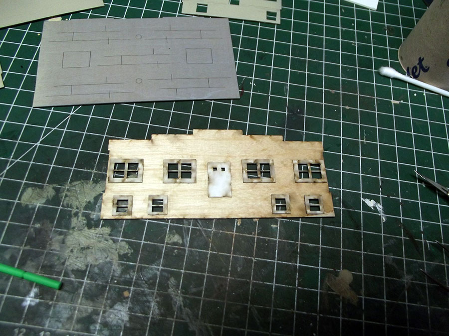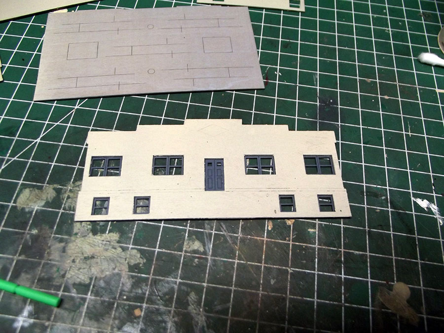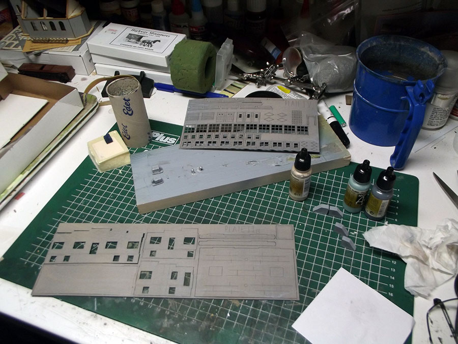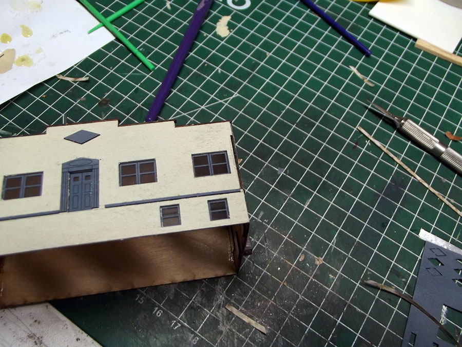 The stuco part of the building has been done with Lucas texture paste, and here are the airbrushed parts.