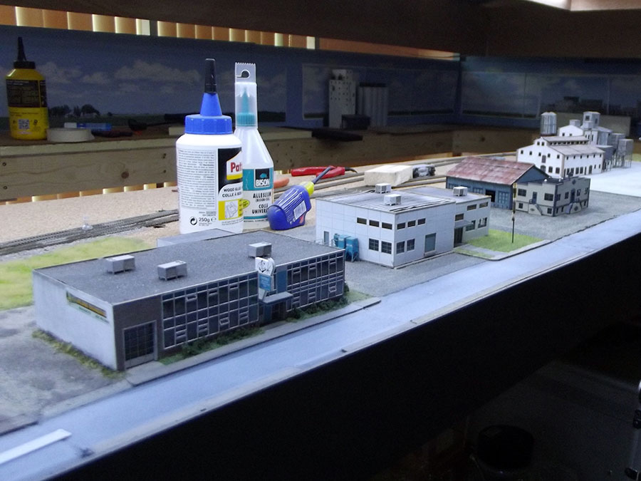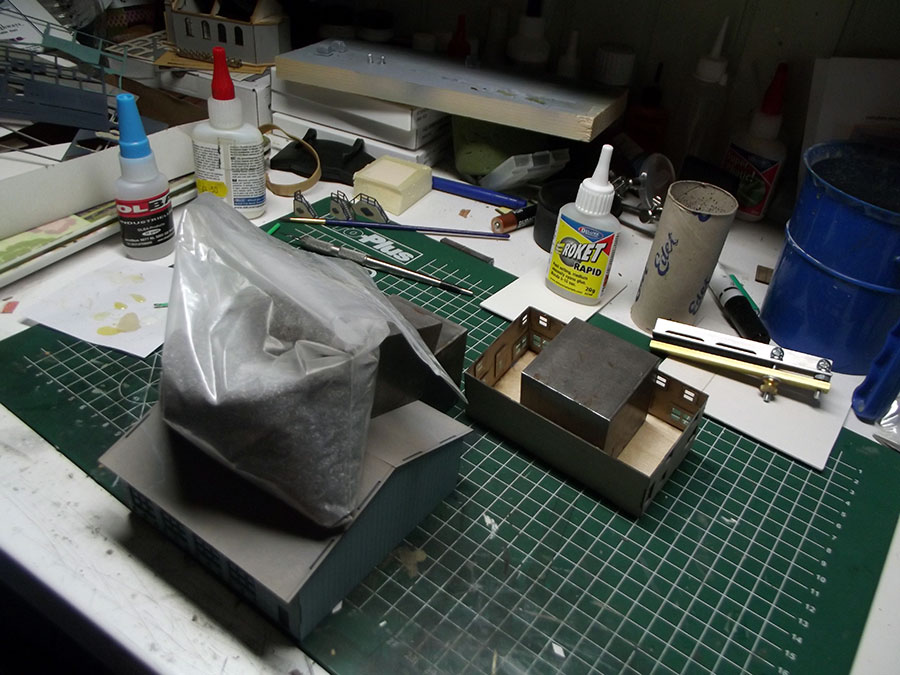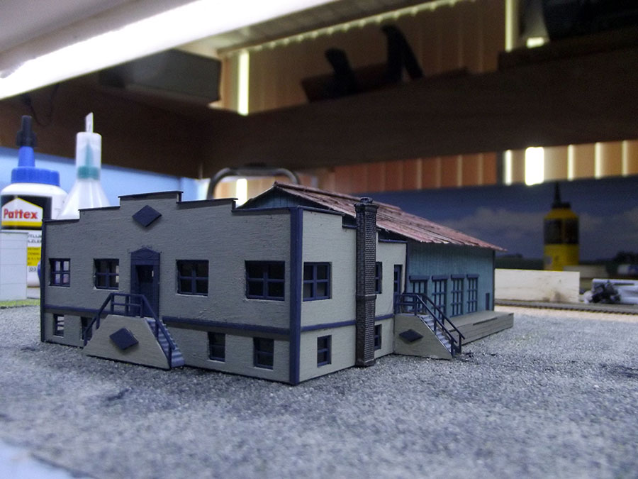 Some photo's of the finished building on the actual site of the layout, details , trucks and figures will follow.