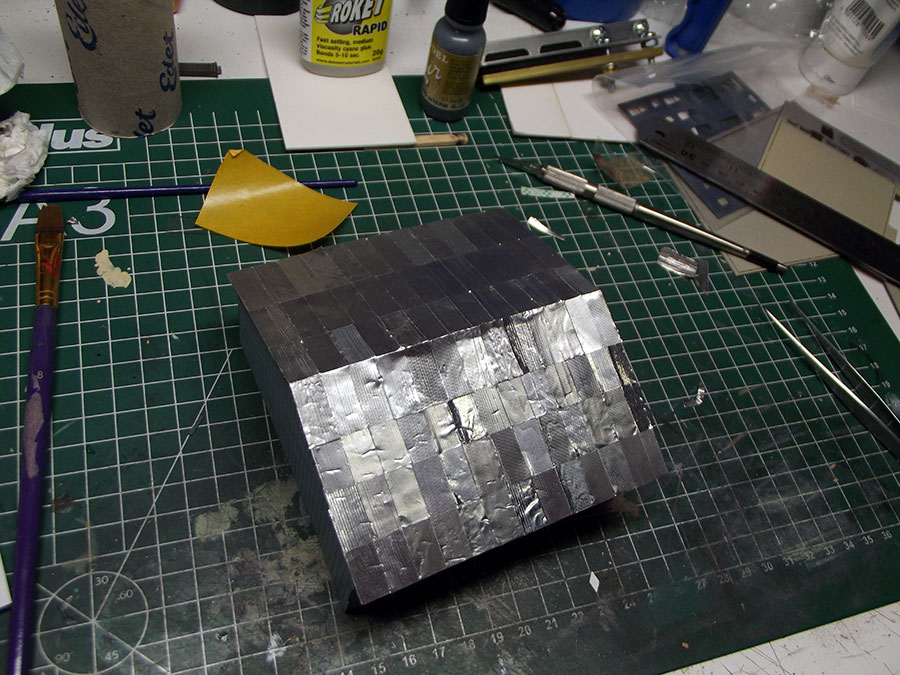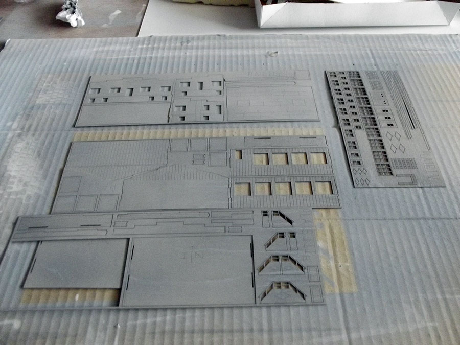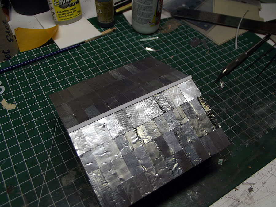 The pieces of corrugated roofing assembled , I used transfer tape.