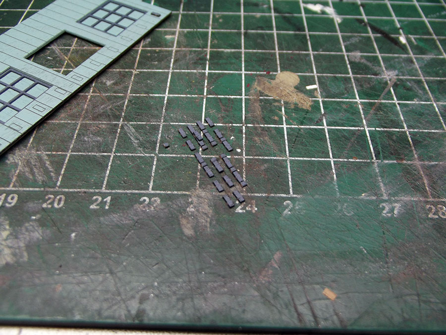 There are no strips to cover the corners , I made some out of the left over peel and stick trim and window sprue.
