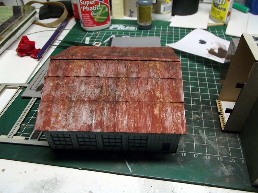 The roof after 4 different colors of weathering powder.