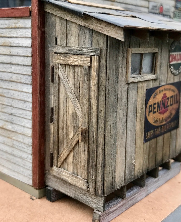 Thanks Jerryrbeach, Donato, Frank, MAP, and Karl. Dr. Jeff, thanks for the catch. I did have some door hardware on the punch list- you can see it in the first pic coming up. This has been a great little kit. I took it to Ames, Iowa last weekend for a combined region NMRA convention. I entered it as a structure (no scenery allowed) in the judged model contest and was happy to have won a first place. There were a lot of details in the kit I couldn't use since I did not incorporate it into a diorama.