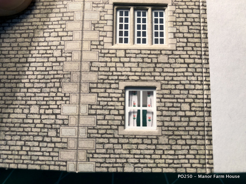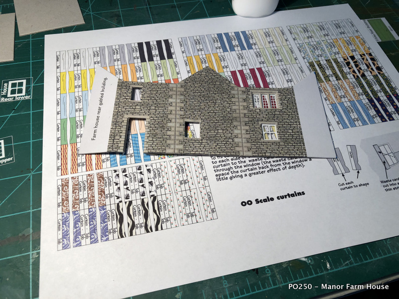 So, this kit comes with a gabled addition to the main building and some lean-to additions to both buildings. The gabled end and the lean-tos are built just like the main building. I decided to add curtains to the gabled end. And here is how all that went after following the steps above.