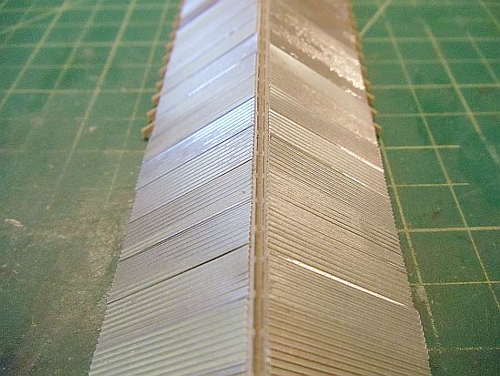 When one side was finished I trimmed the edge pieces off. I was careful not to cut in to the corrugated pieces.