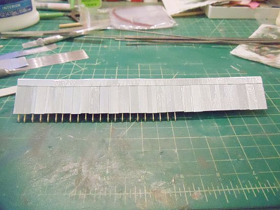 I took a section of corrugated material and cut a strip 5/8" in width. I then placed it on the roof and gently bent it down to fit the roof angle.