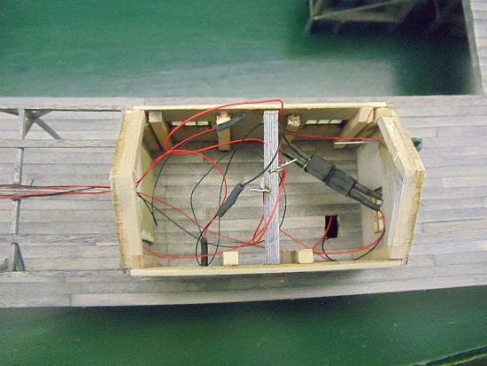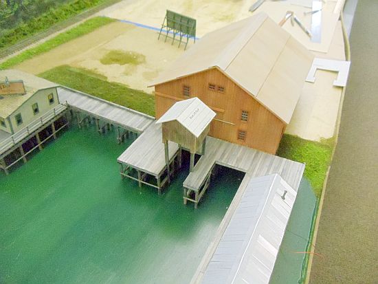 The boat lift house is glued together and the second photo shows how it will fit on the main dock in front of the main structure.