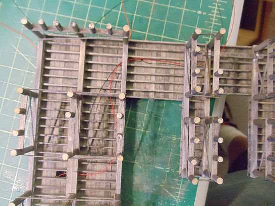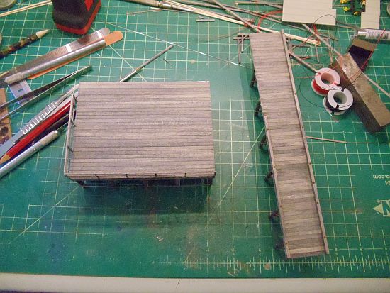 I won't glue these in place on the dock until I'm ready to glue the dock to the base. The net drying racks are small and very fragile. I certainly don't want to rebuild them later.