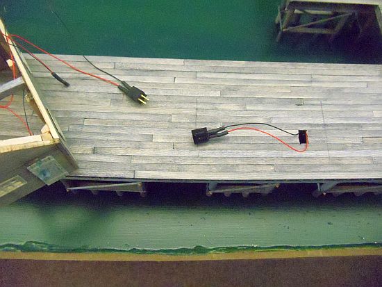I ran the wires under the dock and between the stringers.