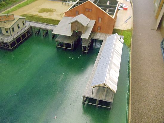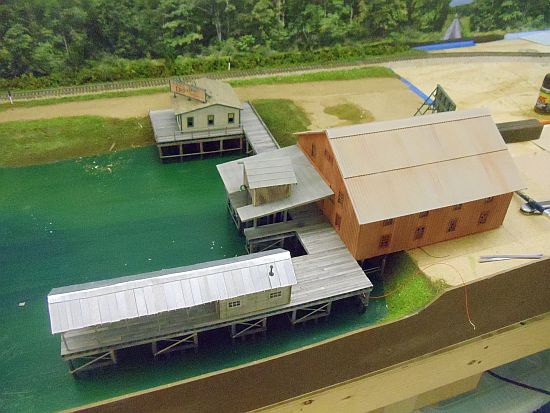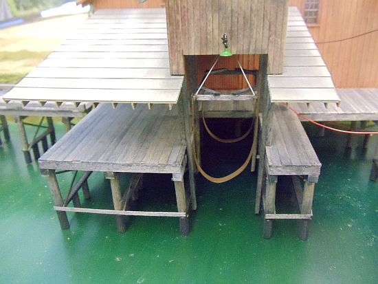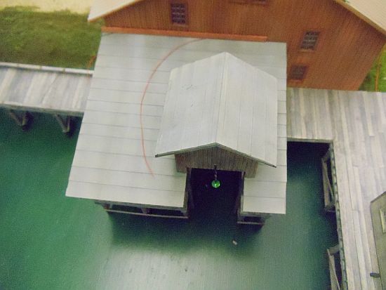 The boat lift and canopy roofs were painted with Floquil SP Light Gray. When dry, I weathered them with PanPastel chalks.
