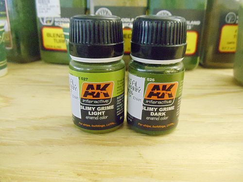 When the piles have dried for a day or so, I'll go over them with AK Interactive Slimy Grime Light and Dark where the water line will be.