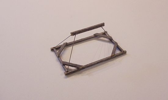 I used a short piece of scale 6X8 and drilled a #80 hole in each end. I then bent the .012 music wire at an angle to fit into the holes and super glued them in place.
