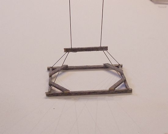 The instructions suggested taking the .012 music wire and cut four equal pieces and super glue one on each corner. When the glue dries, you were to bend them up to meet in the middle.
