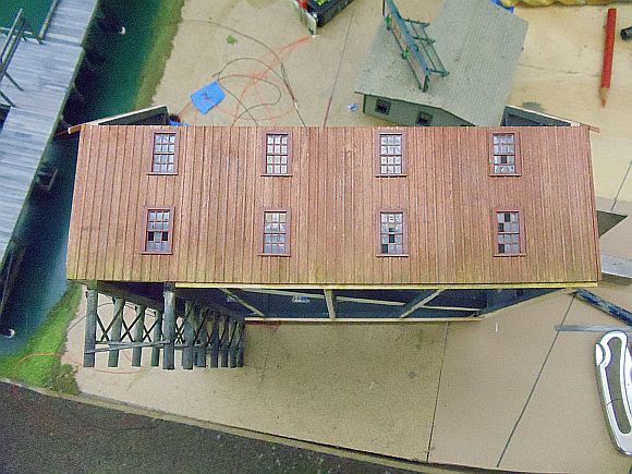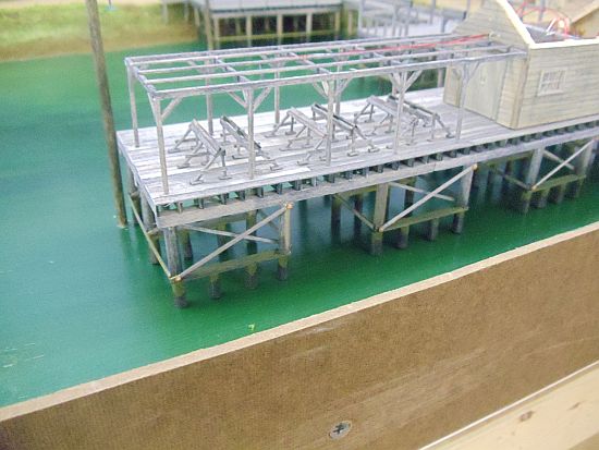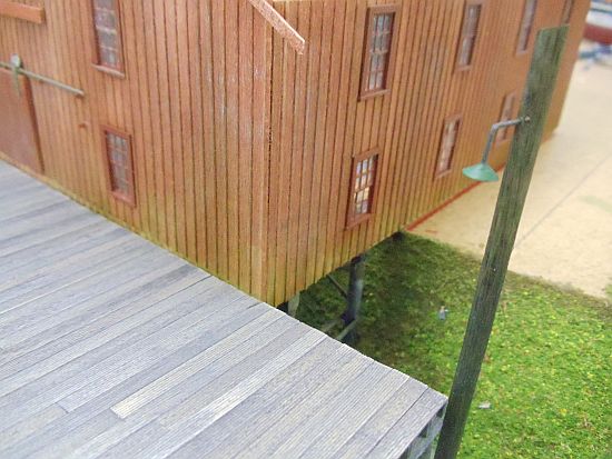 I did a little corner of the front of the structure also. I plan on having some wet nets stored here. I'll add a little grimy slime to the dock around the nets once I get them made.