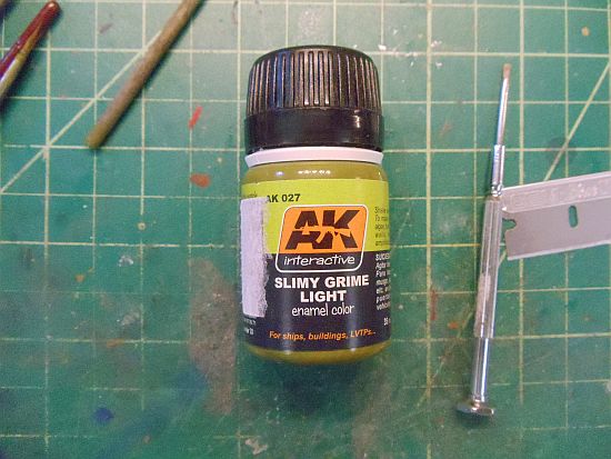 I used AK Interactive Slimy Grime Light. I mixed the wash to a 70 part thinner to 30 part Grime.