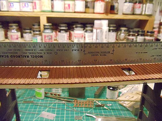 This evened out the side walls. I then used the 12x12 stripwood to brace the ends walls as shown.