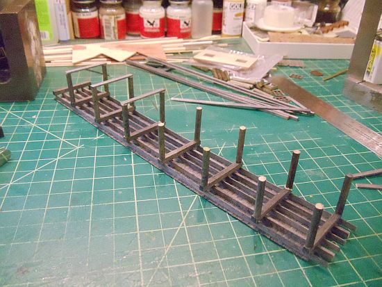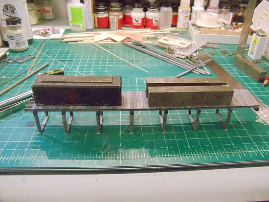 I gathered all the strip wood needed to complete this portion.  I used the fine tooth razor saw to scribe the scale 2X12's and the pilings.