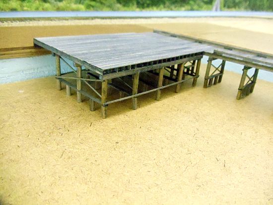 Two of the three main dock sections are now complete. Well, I still need to do a little weathering with some pastel chalks.