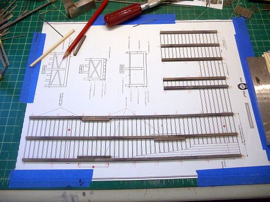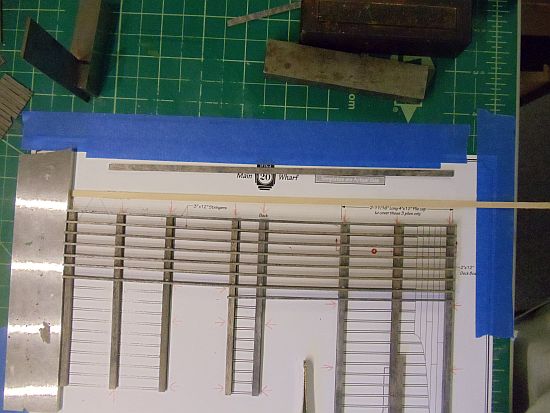 Along the back side of the dock, the side that butts up against the main warehouse, is 9" long. The 3 X 12 stringers in the kit are only 8" long. This is not an area where I want to start splicing stringers.