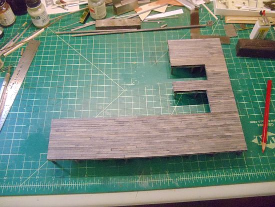 I made the decision to remove, as in cut off, eight scale feet from the approach dock.