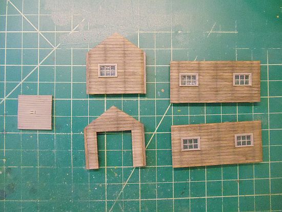 The main net drying dock has a long shed roof and a small sub assembly structure on the dock. I braced the walls per the instructions and set them aside to dry overnight.