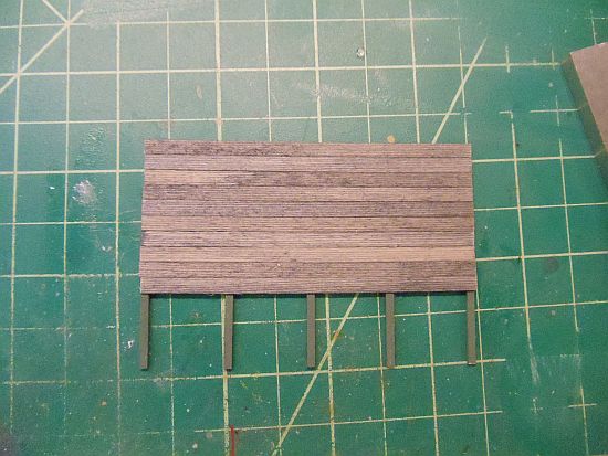 I scribed and stained some scale 1X10s and glued them to 4X6 posts.