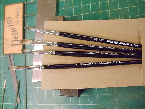 Postalkarl turned me on to some dry brush weathering brushes. I got them from Micro-Mark.