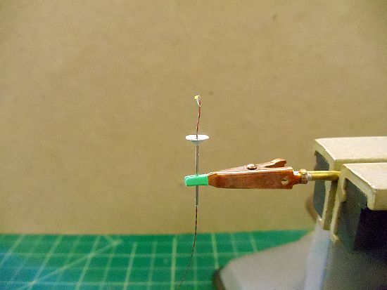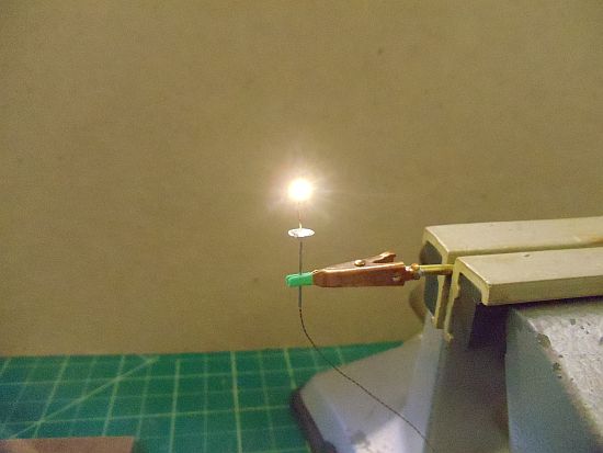 When placed on Delwin's diorama, the wires will be on the other side of the light and not seen by the viewers.