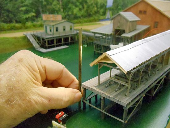 I started making the light poles for Delwin's. I'm using the .018" tubing and shades from Slim and the Nano Pico LEDs from Model train software.