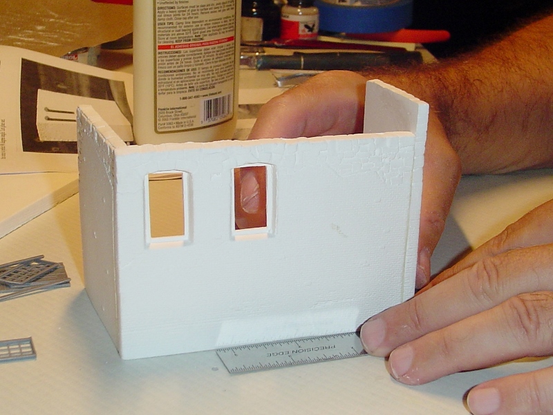 I think I picked up the Tite Bond Glue tip from when I built the hotel that comes in the SRMW Cambridge Crossings kit.  It holds quite well.  But I certainly wouldn't hesitate to use 5 minutes epoxy.  I gave some thought to adding some 1/8" strip wood to the inside, glued in place with 5 minute epoxy to inside of each corner to strengthen the structure but decided it wasn't really necessary.