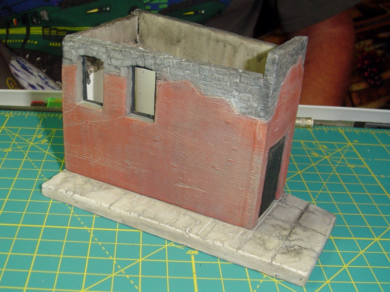 I'm still adding washes to the building as I work my way along.  It's not there yet but it's starting to take different shades of color which build some character.