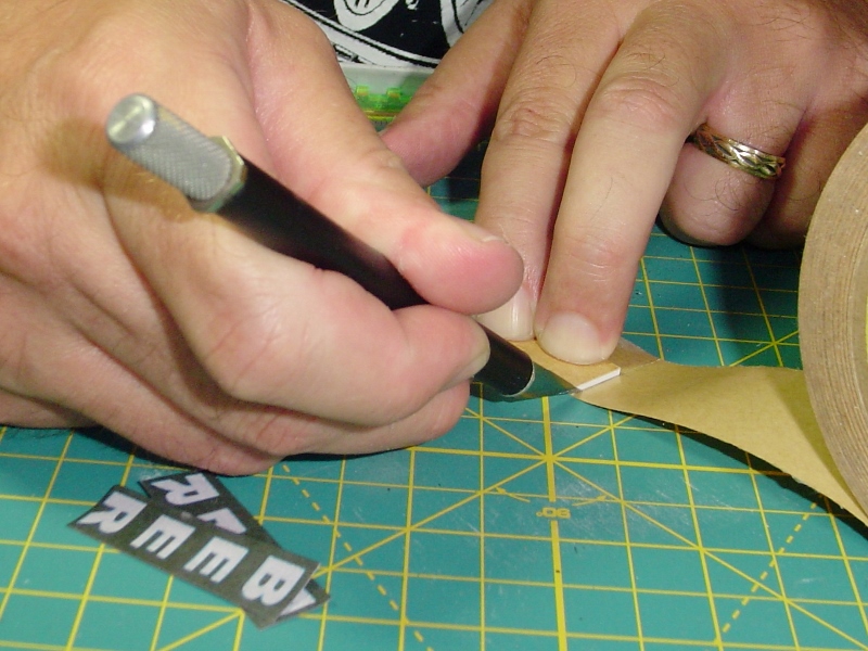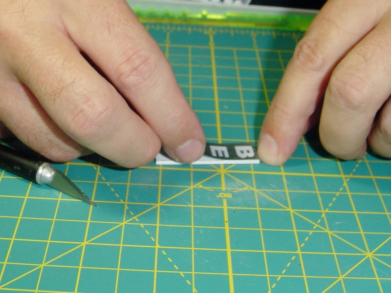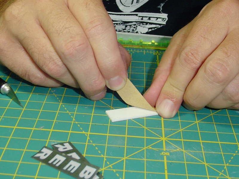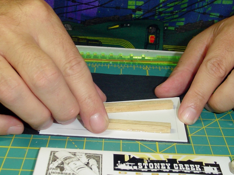 Carefully position the signs on the sticky styrene.  Two things can go wrong here, you can get 'em on crooked and/or you can mount them so that one is right side up and the other upside down.  Be careful not to do that.   ;)
