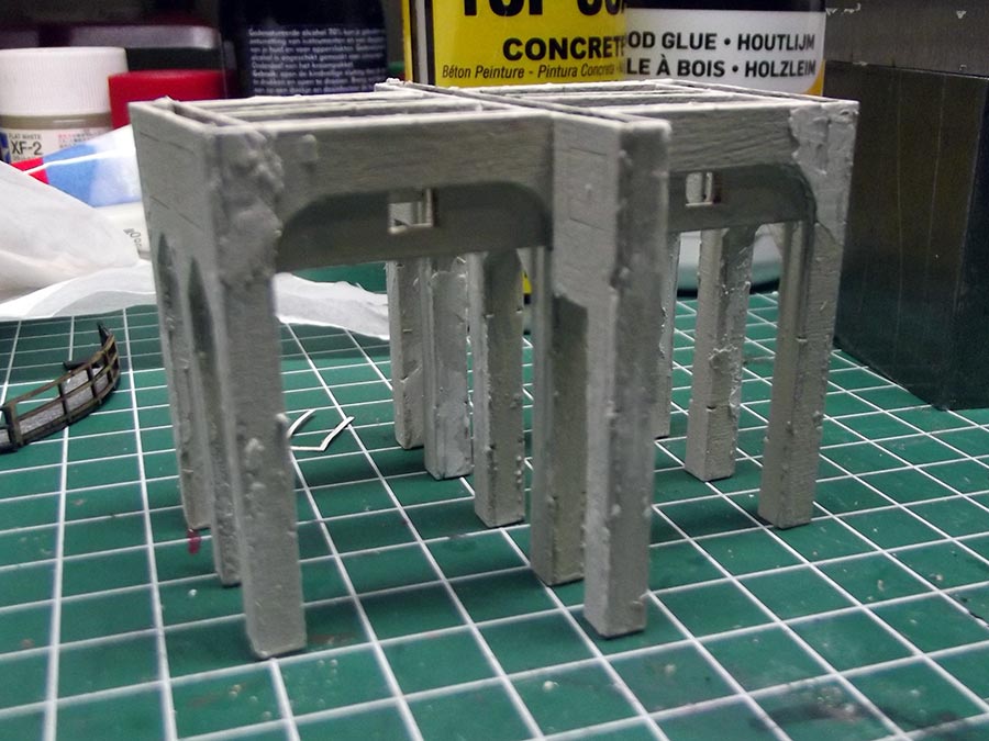 The concrete parts after airbrushed Floquil Aged Concrete for the first time.