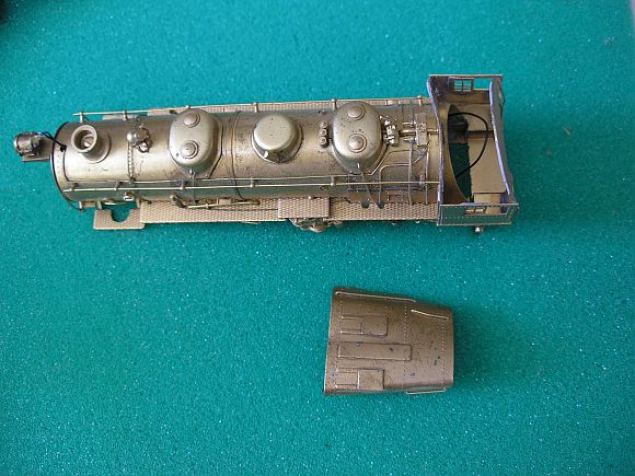 The front and rear foot boards were bent and broken off the frame. The cab roof was unsoldered and almost folded over onto itself or as least curled curlded on the sides. The drawbar was bent. The loco had no journal springs, no brake shows, a damaged steam chest and was extremely dusty! Also, there was no bottom underframe plate.