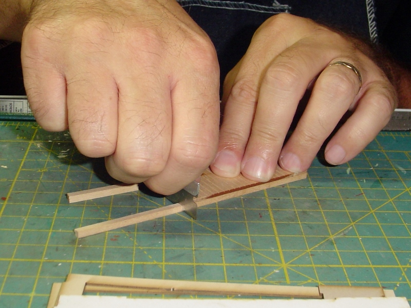 Like usual I glued the bracing on first and then trimmed it to fit using a single edge razor blade.
