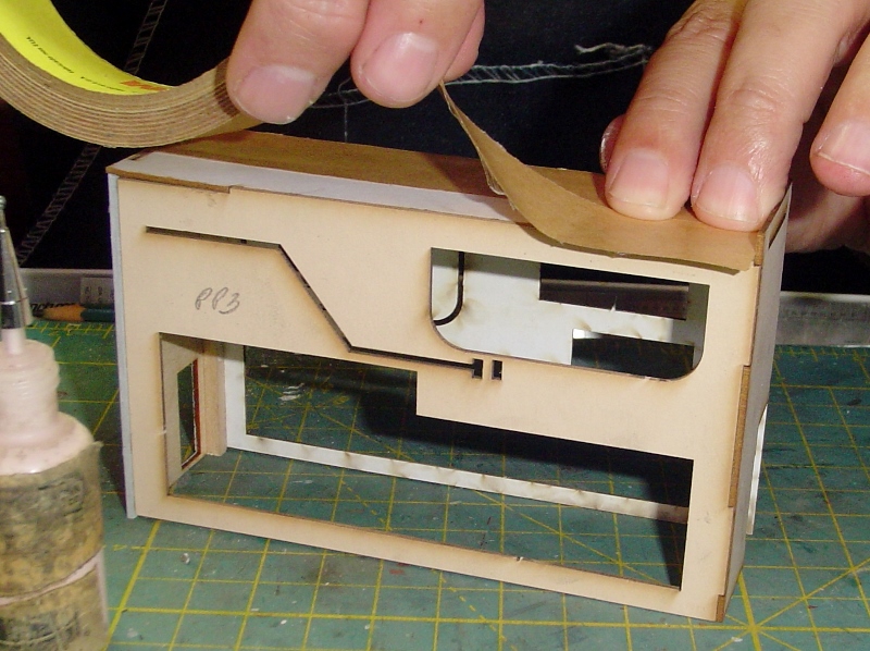 After attaching the rear wall and the roof I covered the roof with 3M Transfer Tape.