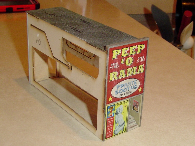 This is small structure and a relatively quick build.  It'll get sandwiched in between the much larger Triple Theater and the Hotel structures.  Here are the parts necessary to build the Peep O' Rama.