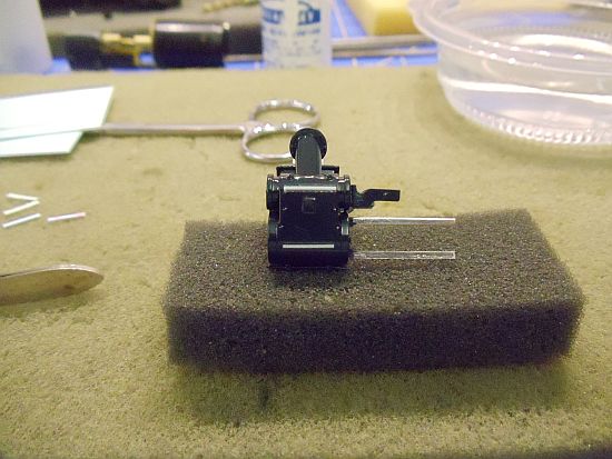 Marker light jewels installed in the front marker lights. Bell and whistle cords installed and painted with Floquil Foundation.