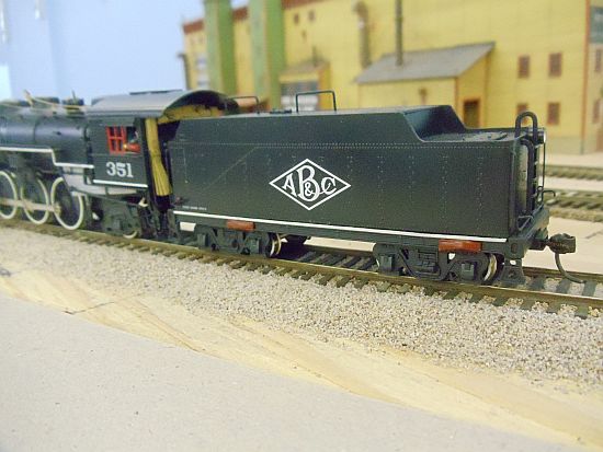 Tender deck edge hand painted with Scalecoat White. Cab curtains installed and tender decaled with the ACL famous hearld and decal stripes.