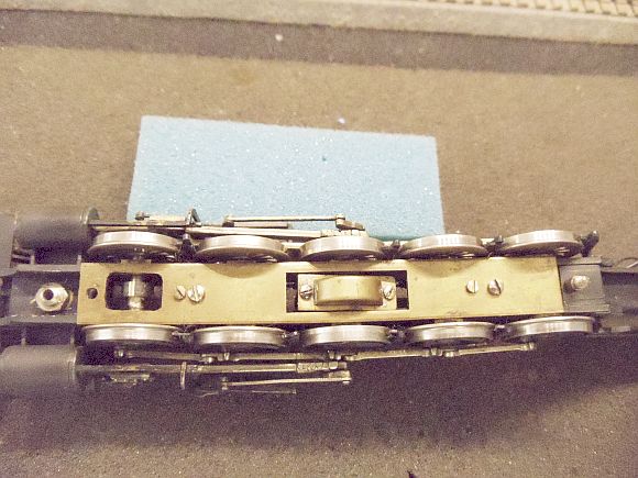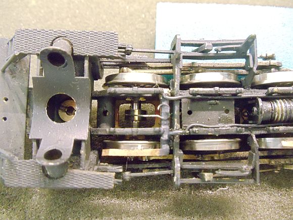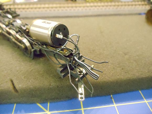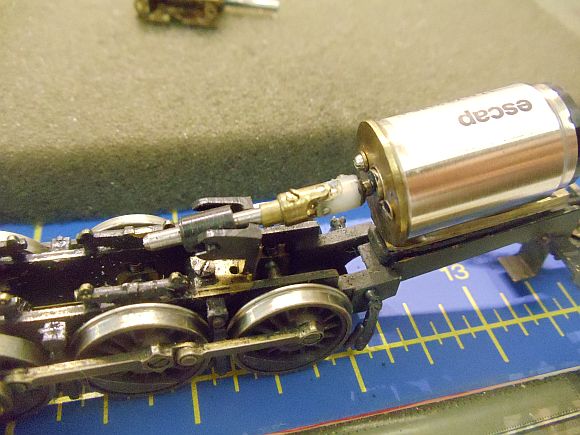 The loco was fitted with a superior Swiss motor. I didn't realize it was this small until I removed the boiler. The loco easily pulled 17 cars and a brass caboose with no problem. Plus it has a universal joint instead of the rubber friction coupling. No doubt this is a big reason it has such great pulling power.