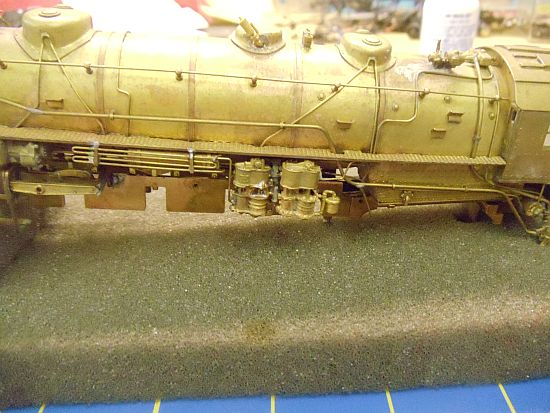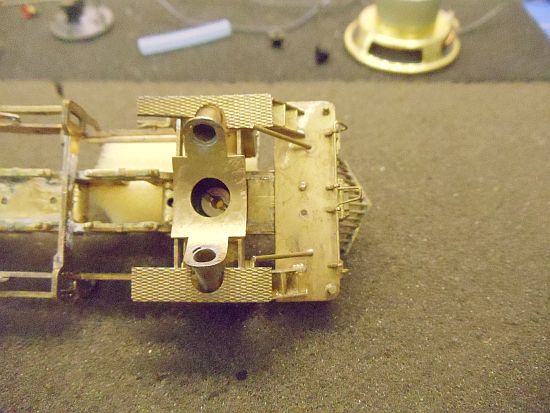 The pumps on the side of the boiler all came off in the Acetone bath. The air pipes in front of the pumps also came off. These were epoxied on as well. I tacked them in place with a drop oif super glue and then the next day used the tip of the solder gun to resolder them.