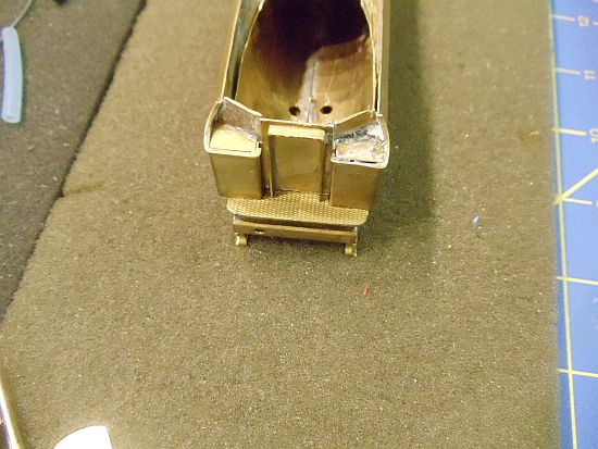 The front truck bolster on the tender came off. I cleaned the pieces and used the torch to resolder it back in place.