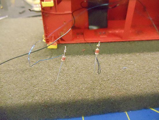 The marker light LEDs come with a blue and red wire. I used the blue wires to wire the resistors.