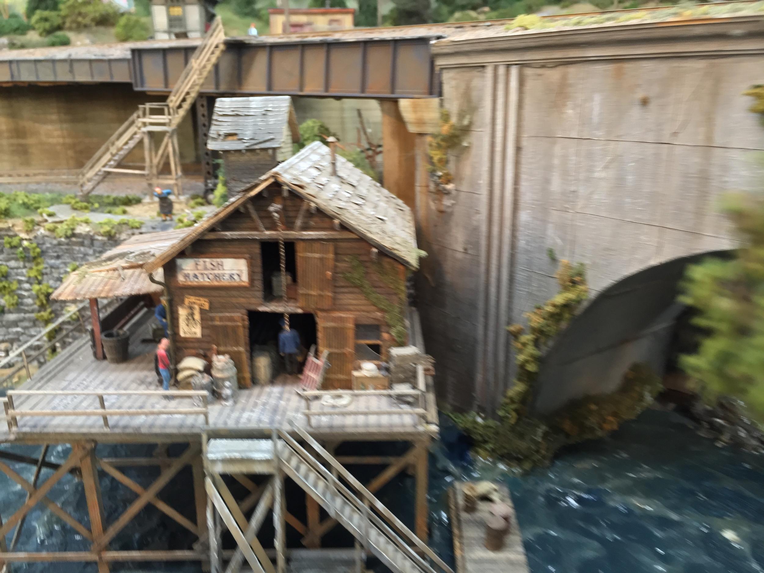 Behind these structures across the mainlines and in the river we have the Fish Hatchery.  This was a long reach but well worth it.
