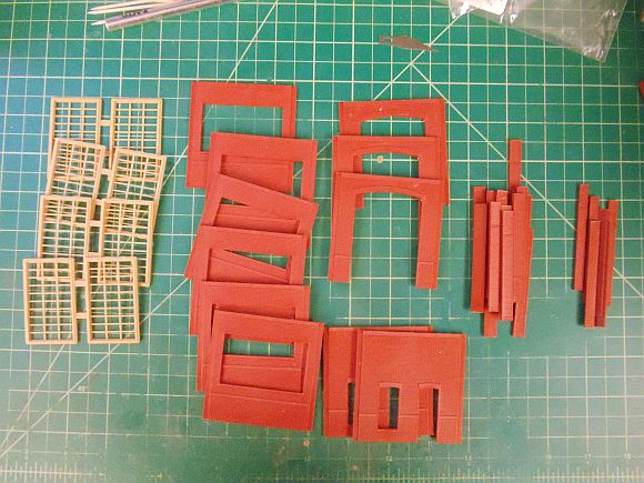 Fast forward several hours of flash removal and I'm ready to glue some walls and pilasters together.