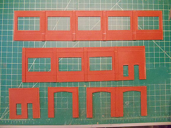 Again, fast forward and the walls are partially finished. Note the upper two set of walls are higher than the wall sections on the bottom. This is due to the cornices being added to the longer wall sections. The others will get the cornices added as well.