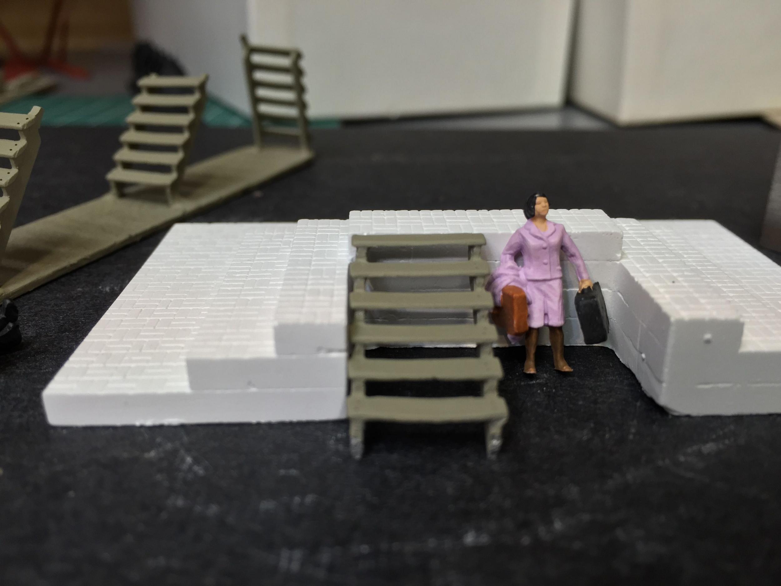 I actually thought the steps looked bigger than that - but even so - try walking up steps with nearly 13" rises!  It seems to be a common problem with plaster kits.  We have 8" steps coming down to our side door - and they are really on the outside limit.  Typically the rises should be around 180mm or just over 7".  That scales out to about 2mm in Ho scale.  I don't know if there is anything you can do - but maybe it is something that manufacturers can look at?  To me it is something that I notice instantly.