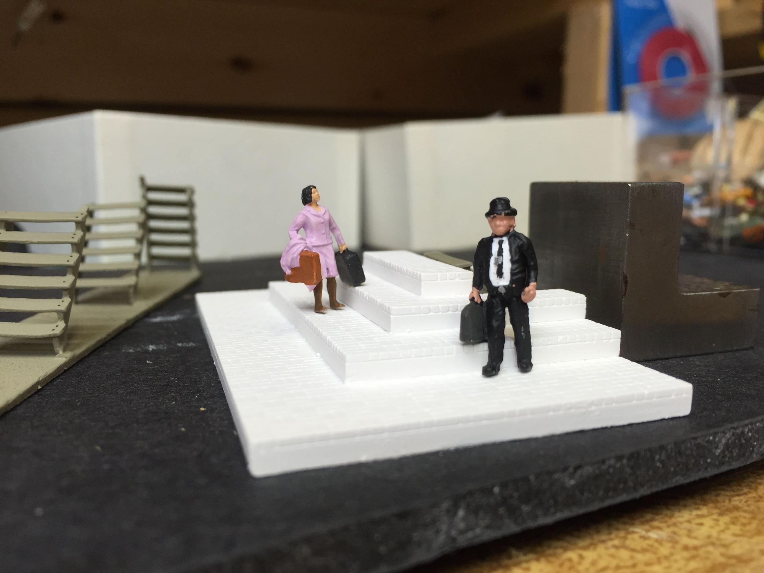 I had the stair castings from George Sellios' Jacob's coal mounted for painting on my workbench so I set one up against the casting.